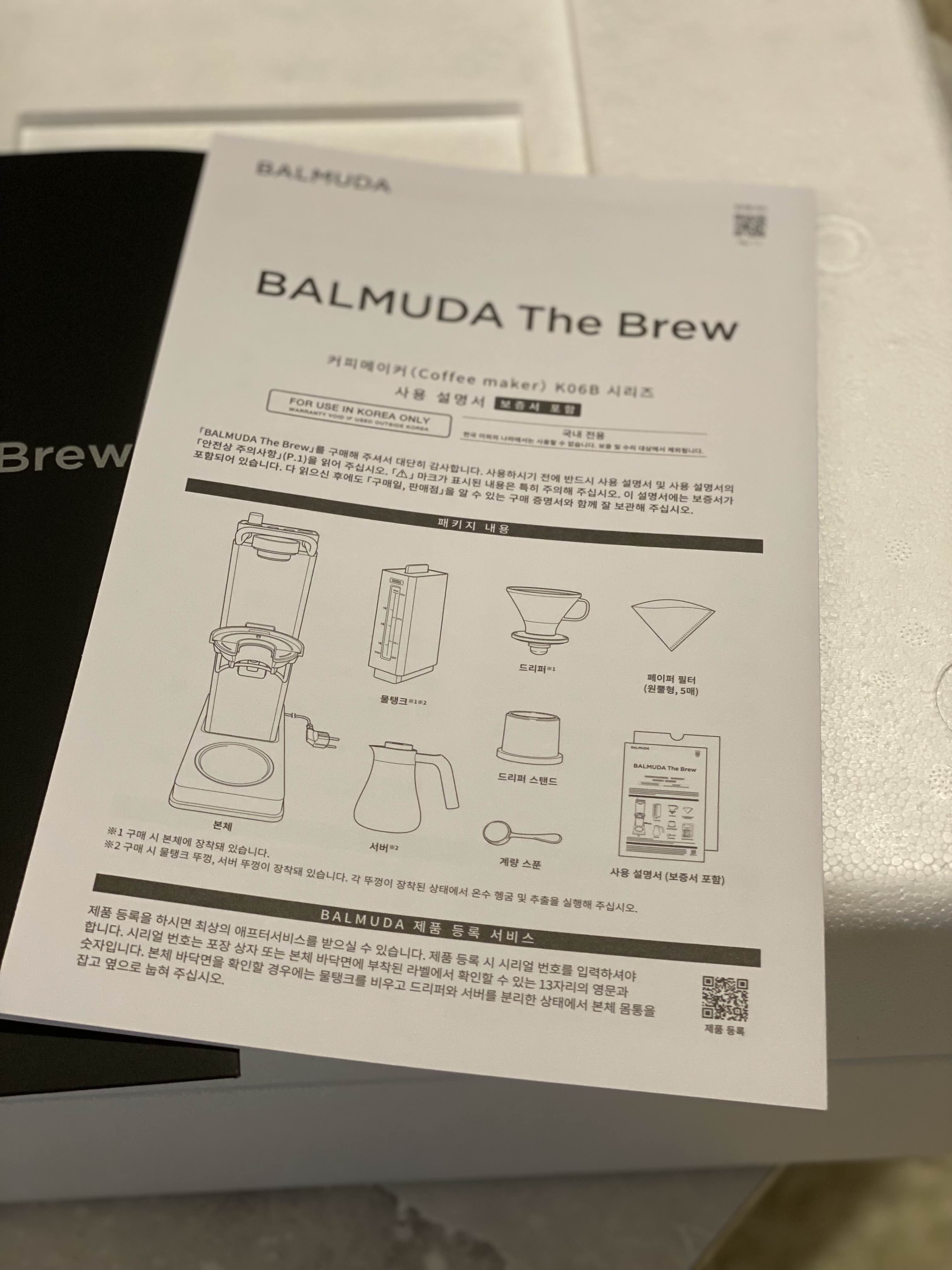 본체, 물탱크, 서버(주전자), 드리퍼, 드리퍼스탠드, 계량스푼, 페이퍼필터 5매, 사용설명서/보증서